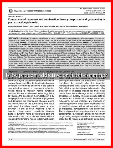 Naproxen is a nonsteroidal anti-inflammatory drug (NSAID) commonly used to relieve pain, reduce inflammation, and lower fever. It is often prescribed for conditions such as arthritis, menstrual cramps, and other acute pain situations. However, a question that frequently arises among patients and healthcare providers is whether naproxen is addictive or habit-forming. This article aims to explore this topic in depth, providing insights into the nature of naproxen, its effects, and the potential for addiction.