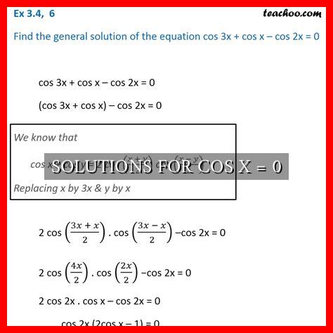 Before diving into the solutions, let’s first understand what the equation cos x = 0 represents. In trigonometry, the cosine function (cos) represents the ratio of the adjacent side to the hypotenuse in a right triangle. When cos x = 0, it means that the adjacent side is equal to zero, which occurs at specific angles in the unit circle.