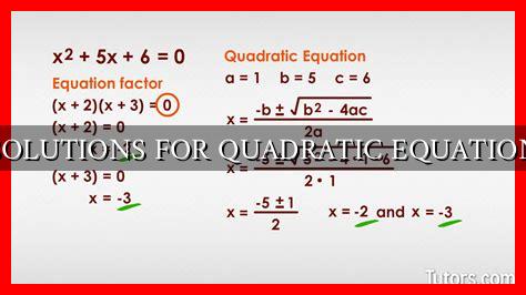 One of the most common methods for solving quadratic equations is factoring. This method involves rewriting the quadratic equation in the form of two binomials that multiply to the original equation. For example, consider the quadratic equation x^2 + 5x + 6 = 0. By factoring, we can rewrite this equation as (x + 2)(x + 3) = 0. Setting each binomial equal to zero gives us the solutions x = -2 and x = -3.