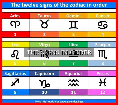 The signs in order offer a fascinating glimpse into the complexities of astrology and human behavior. By exploring the meanings and interactions of the zodiac signs, we can gain a deeper understanding of ourselves and others. Whether you believe in astrology or not, the zodiac can serve as a tool for self-reflection, personal growth, and building meaningful connections with those around us.